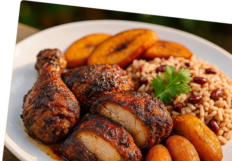 Our guests love classics like Jerk Chicken, Curry Goat, Oxtail Stew, and Ackee & Saltfish. Pair them with sides such as Rice & Peas or Festival & Fried Dumplings for the full Jamaican experience.